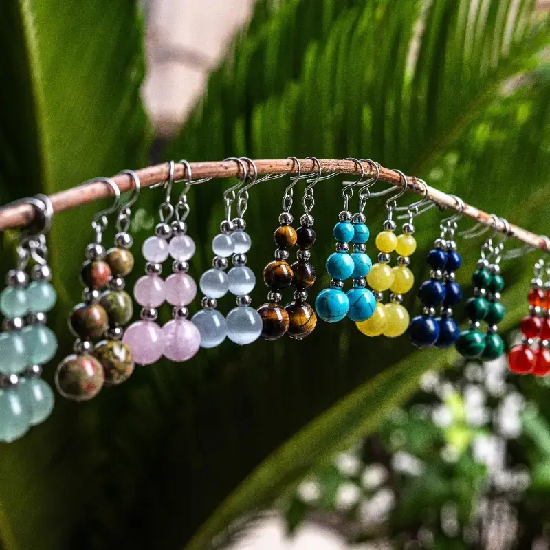 - This pair of brown crystal earrings is made of natural tiger’s eye. It comes with cat’s eye lines, and the texture is natural and transparent, each pair is unique.