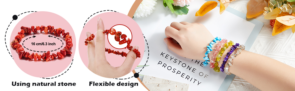 Each gemstone stretch bracelet comes with a stretchy design, which allows you to wear it on and take it off easily, and it can suit most people’s wrists, safe for you to wear for a whole day without any discomfort and pressure.
