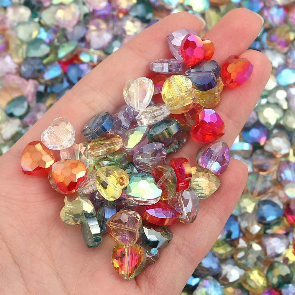 30Pcs Crystal heart shaped DIY Necklaces Beads Phone Charms