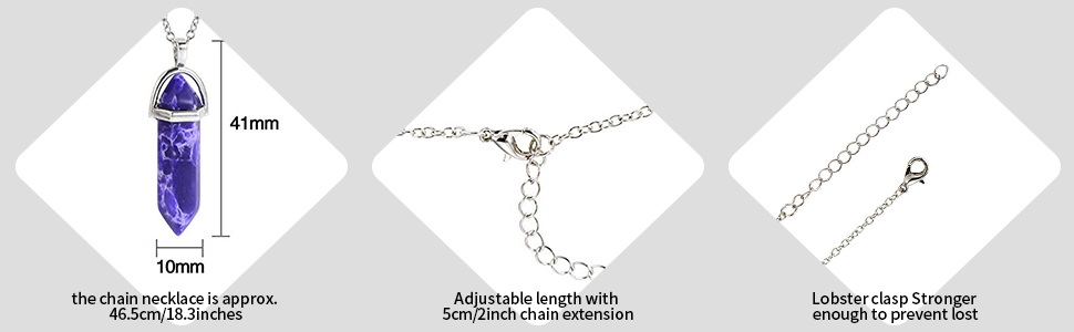 These crystal point necklaces very comfortable and easy to wear, perfect as a positive gift for your friend,lover, mom ,girls or boys.