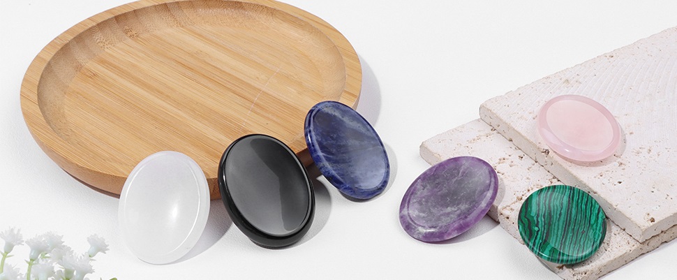 These fit nicely in my hand. I like how the rainbow and the tiger's eye have a curve to both sides of them.